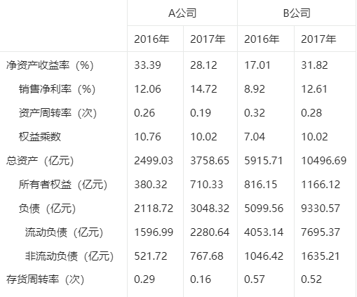 A公司和B公司为同一行业中的竞争对手。请根据下表数据,从公司规模、财务风险、盈利能力、销售能力等方面分析两家公司的竞争优势和劣势。
